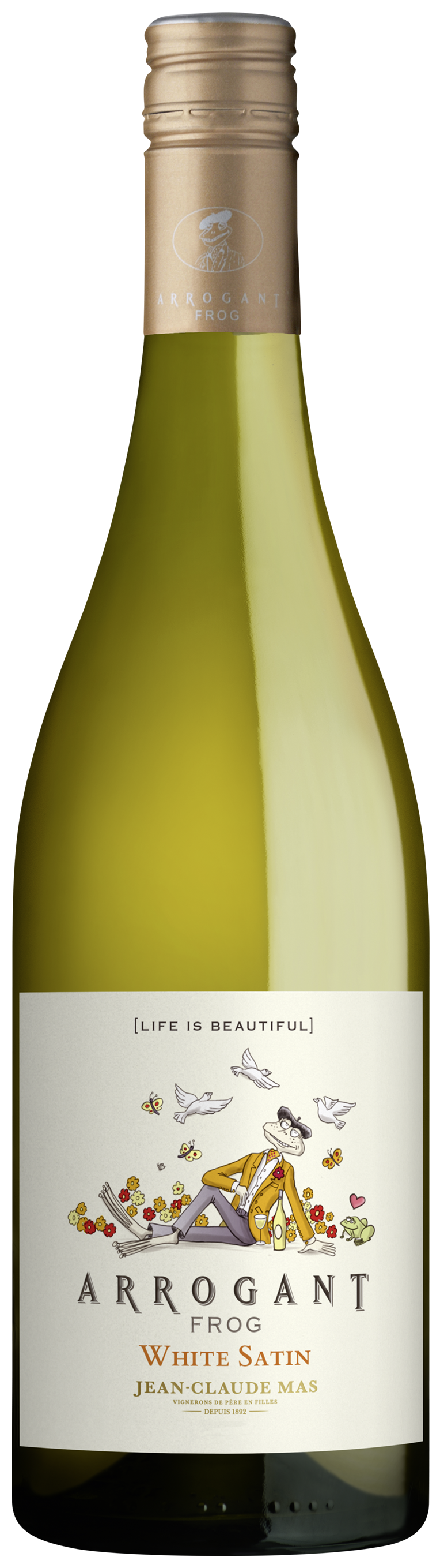 Der Arrogant Frog White Satin präsentiert sich als elegante weiße Cuvée aus Chardonnay, Viognier und einem Hauch Muscat – eine Kombination, die ihm seine unverwechselbare, seidig‑weiche Struktur und charmante Aromatik verleiht.